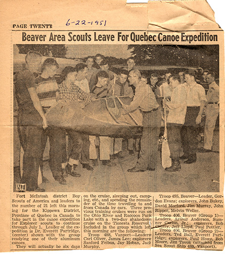 Canoe Trails is a high-adventure experience based in Beaver, PA that has affected the lives of over 7,500 people over the course of about 70 years. It started as the dream of one man, Dr. Everett P. Partridge, who started the program in 1947 when he led Beaver’s Boy Scout Troop 406 and took them on Canadian canoe trips. The program went district-wide by 1951 and in 1965, the program was made co-ed by Mr. George S. Wildman. The program ran has run continuously since 1957.